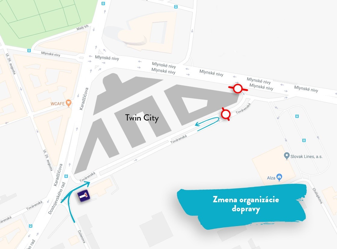 Továrenská ulica je preto slepá a vjazd do nej je iba z Dostojevského radu a Čulenovej. Odbočenie z ulice Mlynské nivy teda nie je možné. Toto obmedzenie potrvá približne do začiatku decembra 2018.