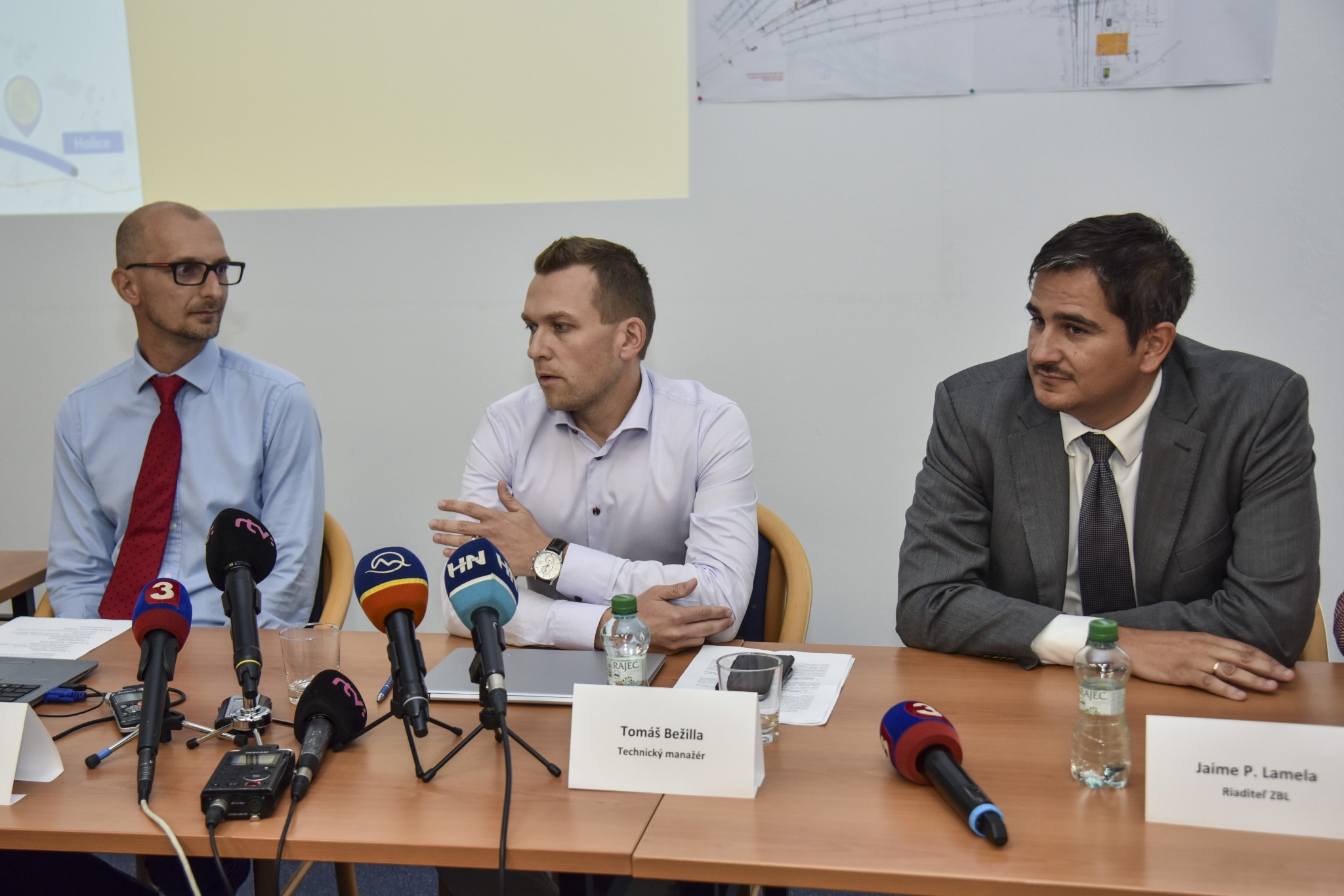 Zľava manažér dopravy D4/R7 Zdeněk Krejčí, technický manažér D4/R7 Tomáš Bežilla, riaditeľ spoločnosti Zero Bypass Limited Jaime Lamela: