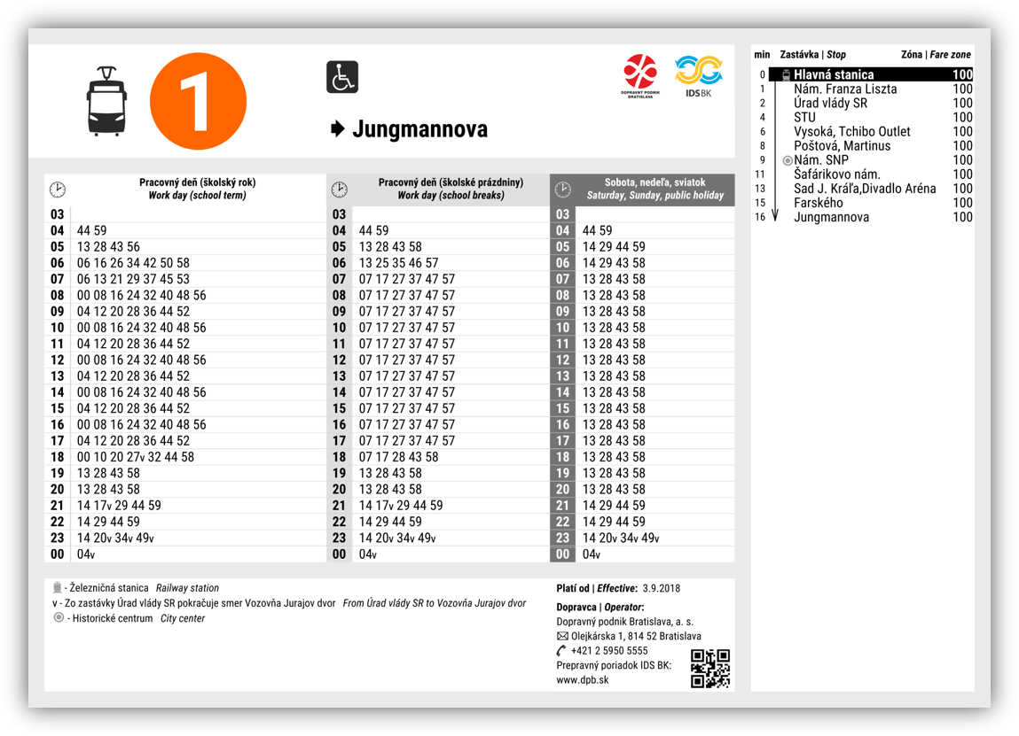 Zoznam zastávok každej linky je po novom v pravej časti cestovného poriadku. V cestovnom poriadku sú piktogramami zvýraznené ďalšie prvky ako napríklad nízkopodlažnosť celej linky, trasa linky na letisko, upozornenie na výluky, služba zdieľaných bicyklov Slovnaft BAjk alebo zvýraznenie cyklobusu.