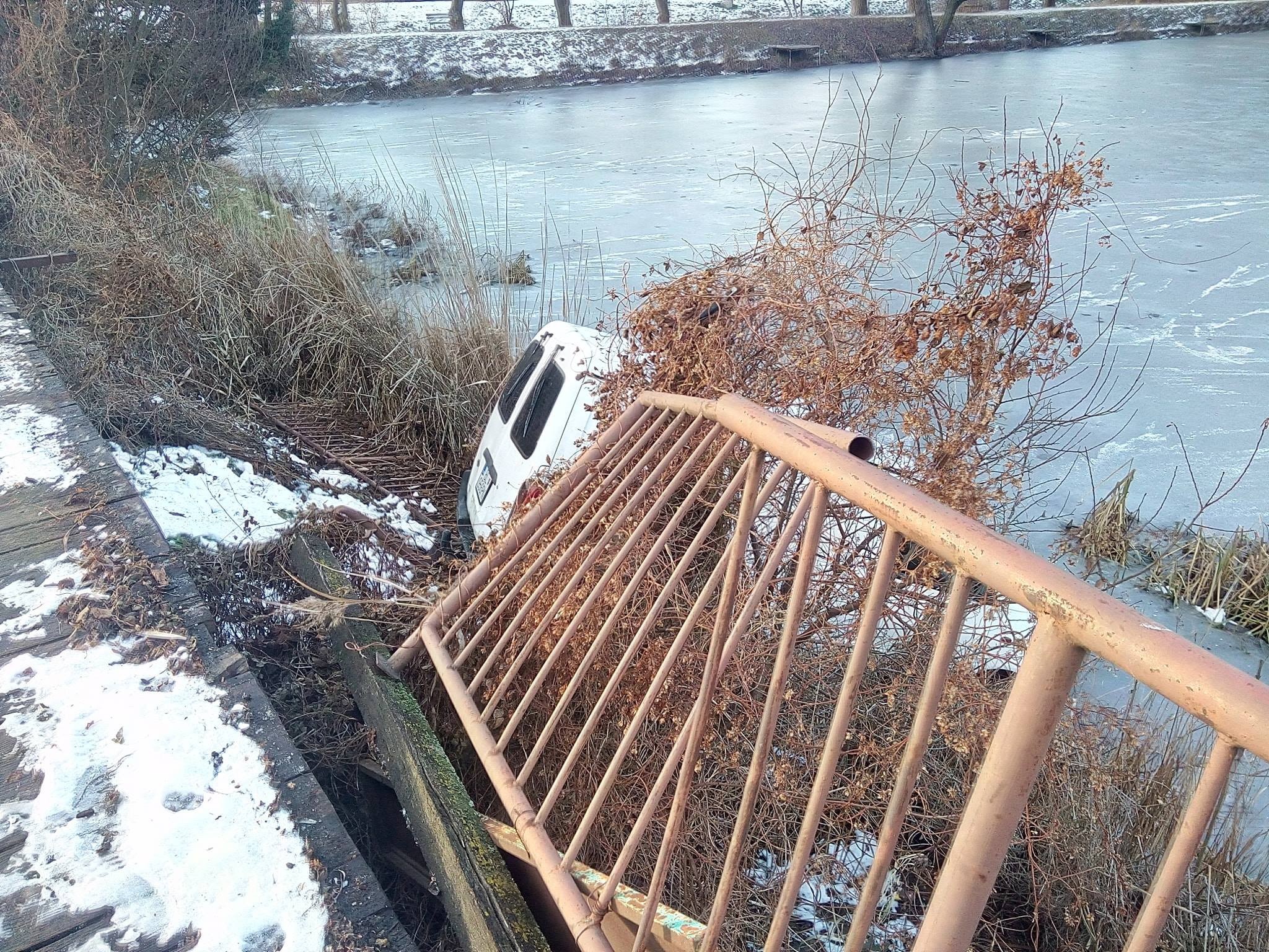 V tomto prípade môžeme naozaj hovoriť o obrovskom šťastí šoféra, ktorého vozidlo sa neprevrátilo celé do rybníka.