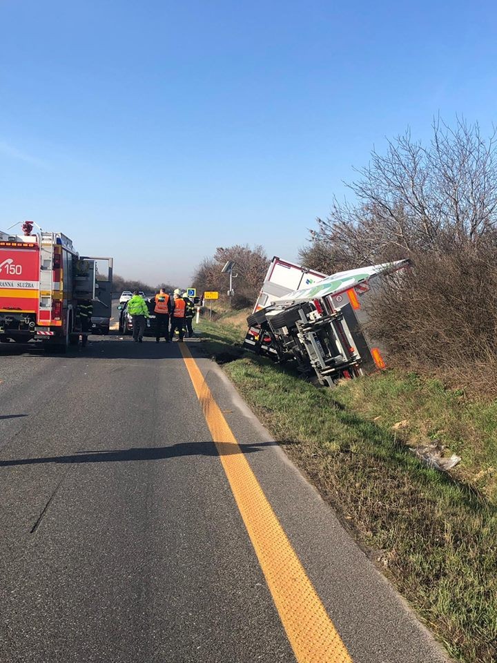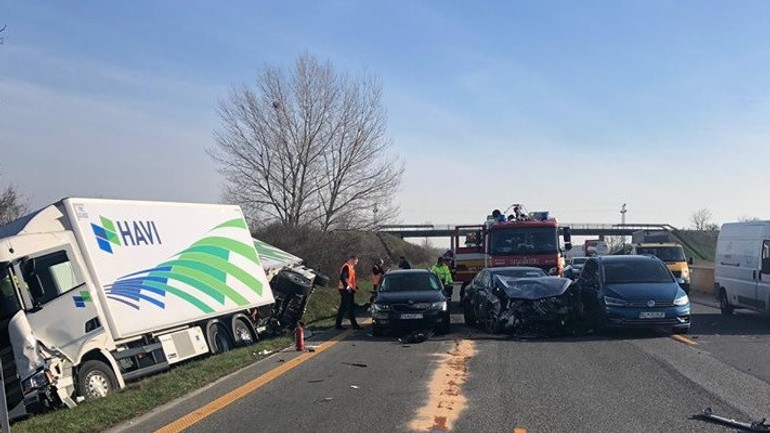 Na diaľnici D1 sa zrazil kamión s tromi osobnými autami. Doprava je spomalená - rátajte s meškaním!