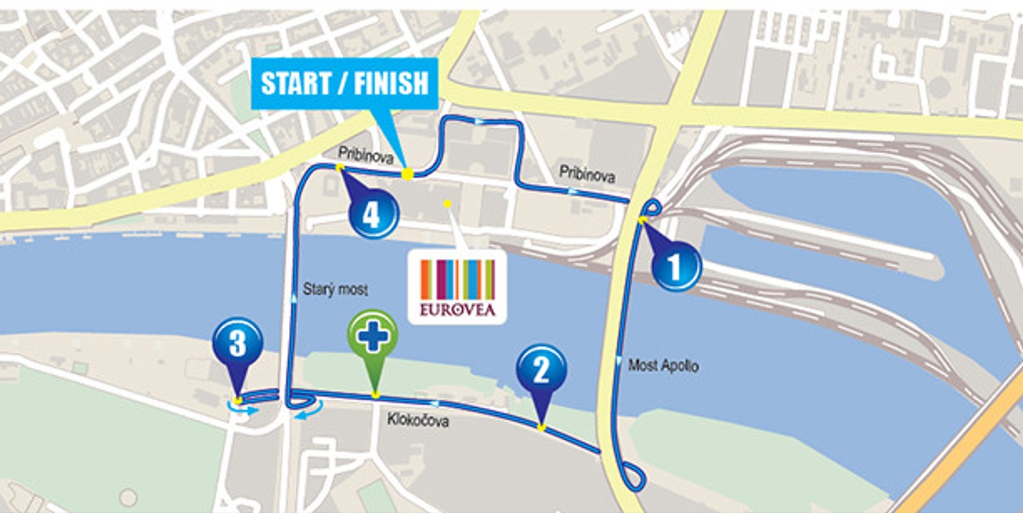 Trasa pretekov so štartom v sobotu o 9:00 povedie po komunikáciách: Pribinova, Olejkárska, Landererova, Prístavná, Plynárenská, Mlynské nivy, Votrubova, Prístavná, Landererova, Dostojevského rad, Karadžičova, Záhradnícka, Ružinovská, obrat cez električkové priecestie na úrovni Tomášikovej ulice, Ružinovská, Záhradnícka, Americké nám., Špitálska, Námestie SNP, Michalská, Ventúrska, Panská, Laurinská, Jesenského, Hviezdoslavovo nám., Rázusovo nábr., Vajanského nábr., Starý most, predmostie Starého mosta, Krasovského, Sad Janka Kráľa, Viedenská cesta, Klokočova, Starý most; 2. kolo s trasou Dostojevského rad, Landererova, Čulenova, Pribinova, popod Most Apollo, Prístavná a ďalej po rovnakej trase cez Ružinov, centrum a Petržalku do cieľa.