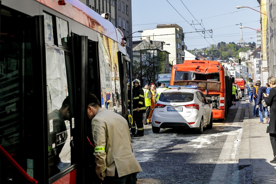 Ďalšie podrobnosti o nehode nám poskytli policajti. "Dnes o 08.00 hod. (presne 7.47 h - poznámka redakcie) došlo v blízkosti križovatky ulíc Šancova a Karpatská k dopravnej nehode dvoch vozidiel MHD. Zrážkou utrpelo podľa doterajších informácií celkovo desať osôb ľahké zranenia a dve osoby ťažké zranenia. Celková škoda spôsobená dopravnou nehodou je predbežne vyčíslená na cca. 50.000 eur. Presné príčiny a okolnosti, ktoré tejto nehode predchádzali, v súčasnej dobe vyšetrujeme," povedal nám bratislavský policajný hovorca Michal Szeiff.