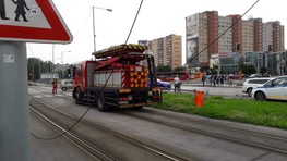 FOTO a VIDEO: Kuriózna nehoda: Bager poškodil vedenie a úplne ochromil električkovú dopravu do Petržalky