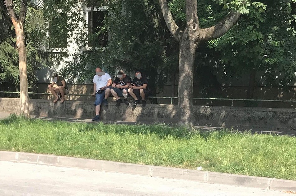 Pracovníci prepravnej kontroly sa počas čakania na nasledujúci spoj ukryli do chládku pri zimnom štadióne...