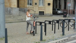 Kolobežky nemajú dokovacie stanice, po ukončení našej jazdy sme kolobežku odstavili na vhodné miesto – napríklad blízko bikesharingového stojana na bicykle alebo jednoducho tak, aby neprekážala v ceste chodcom, cyklistom či autám. Jazdu sme ukončili cez aplikáciu, ktorá nás vyzvala, aby sme odfotili miesto, na ktorom sme kolobežku nechali zaparkovanú.