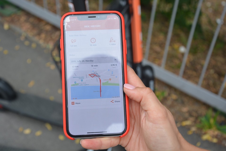 Za 13 minút jazdy sme zaplatili 2,95 eur, nejazdili sme však stále, mali sme aj prestávky. Celková dĺžka jazdy bola 1,3 km. V tom je započítané aj 1 euro, ktoré platíte za každé odomknutie kolobežky. Pri krátkej vdialenosti je to nevýhoda, pri dlhšej sa to euro „schová“ do celkovej sumy jazdného. Pri porovnaní cien v okolitých krajinách sme zistili, že ceny sú takmer rovnaké.