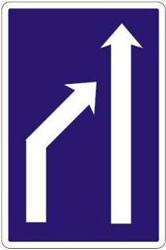 Dopravná značka C 22b (zníženie počtu jazdných pruhov):