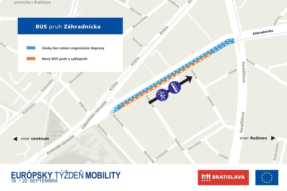Vyhradené jazdné pruhy pre MHD a cyklistov na Záhradníckej ulici majú podľa magistrátu znížiť časové straty trolejbusových liniek 202, 207 a 212. Priemerný interval liniek MHD v úseku počas školského roka v rannej špičke je približne dve minúty 20 sekúnd a v poobednej špičke tri minúty. "Navrhnuté riešenie zároveň umožní jazdu cyklistov pri pravom okraji vozovky, ktorá je bezpečnejšia ako v ľavom pruhu," podotkol magistrát.