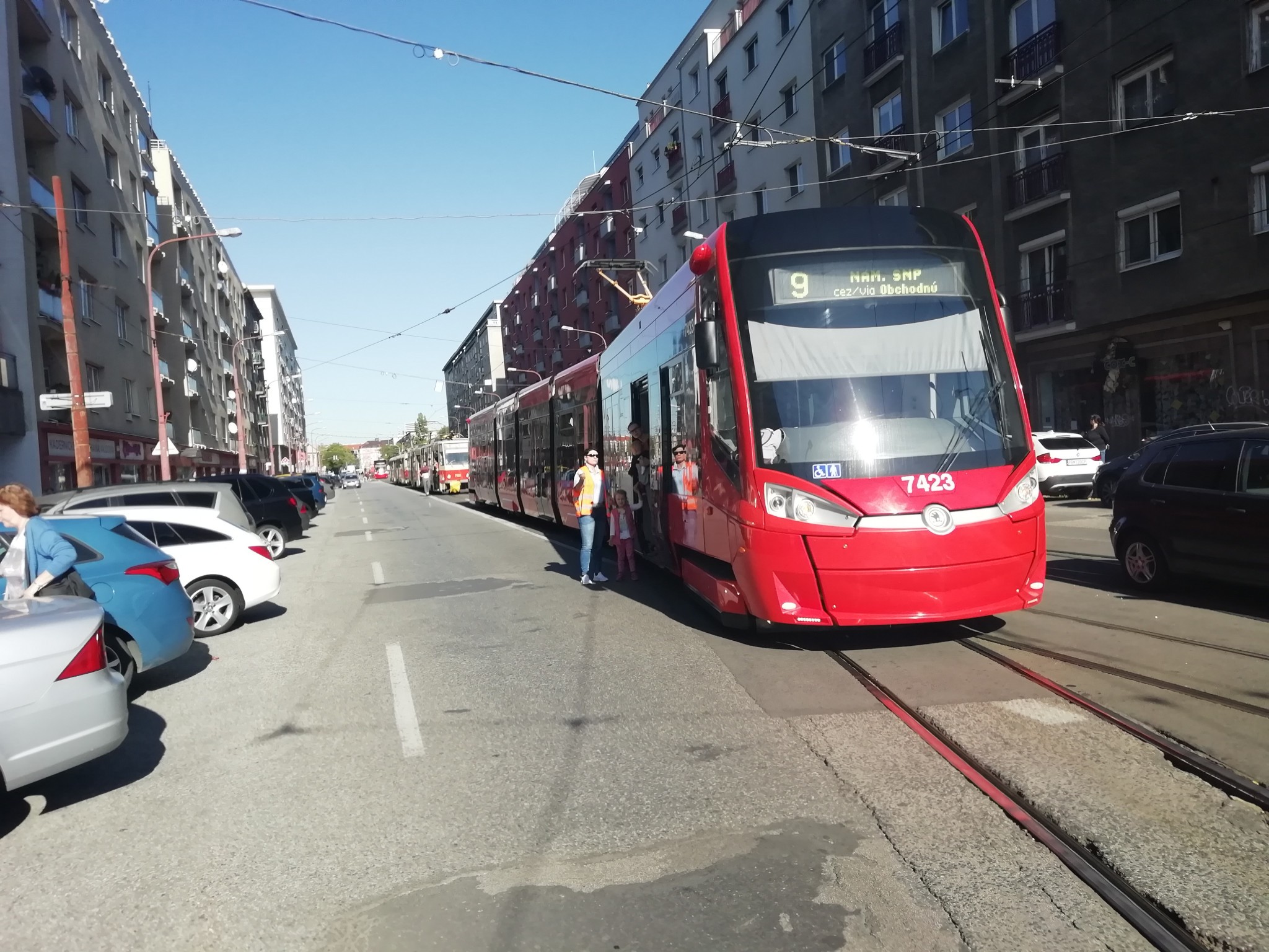 V jazde nemohla pokračovať električka linky číslo 9, ktorá potrebovala odbočiť z Krížnej smerom na Obchodnú. Čoskoro stálo v rade niekoľko električiek so stovkami ľudí. Na miesto dorazila aj odťahovka.