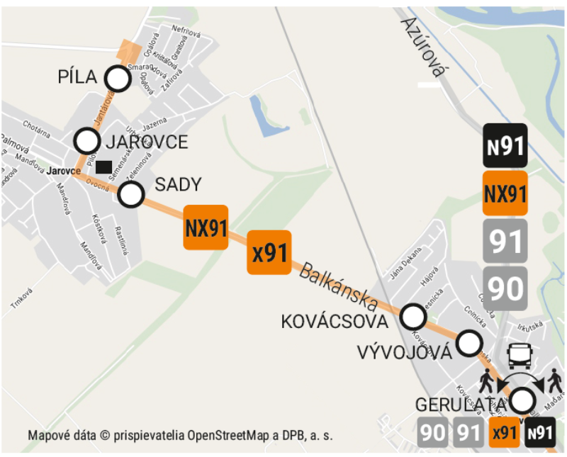 Náhradný autobus X91 bude v 20 min. intervaloch premávať po trase ŽST Rusovce - Gerulata - Jarovce - Píla. Prestup medzi náhradnými autobusmi na tie do centra mesta bude možný na zastávke Gerulata.