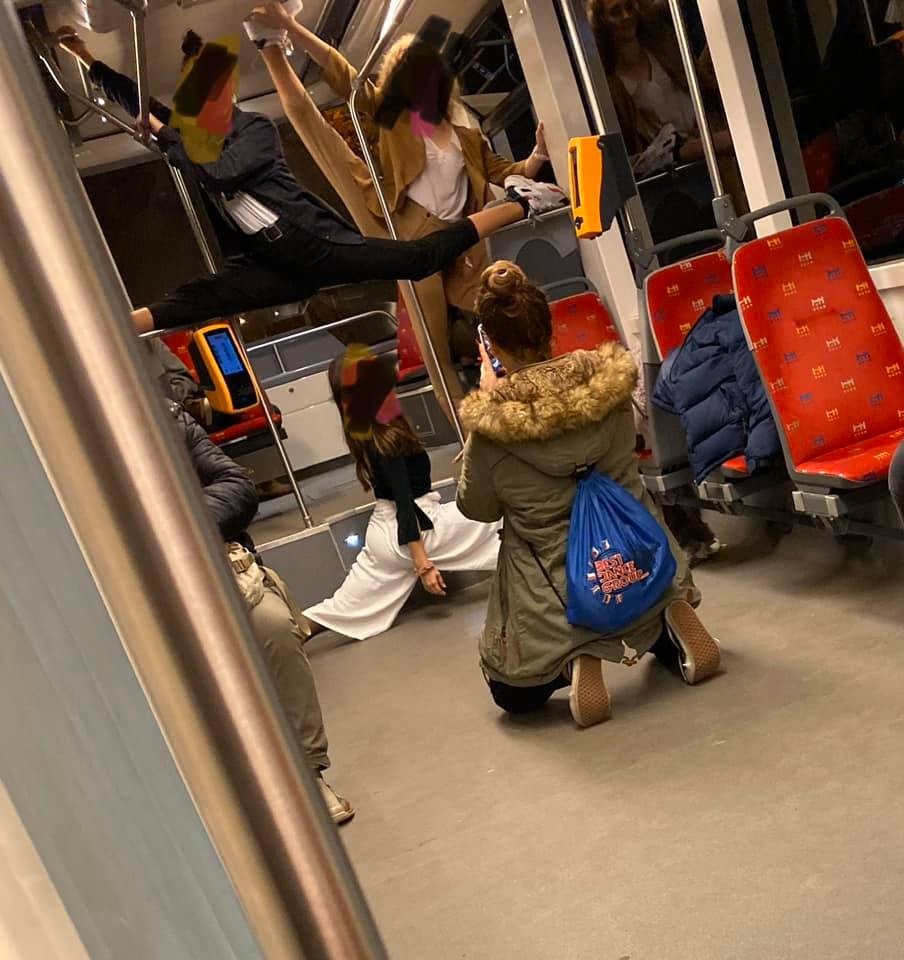 V tomto prípade sa dá predpokladať, že dievčence sa do krkolomných polôh dostali len kvôli fotografii, ktorú im zabezpečila ich kamarátka a bežne "špagáty" na tyčiach vo vozidlách MHD nerobia...