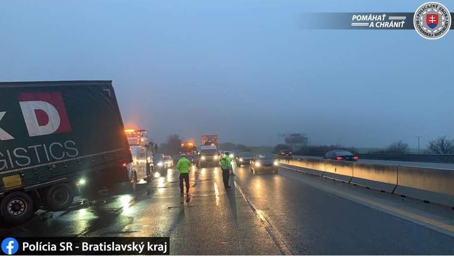 Z dôvodu dopravnej nehody je diaľnica D1 v smere do Bratislavy prejazdná v jednom jazdnom pruhu. Tvoria sa rozsiahle kolóny. Informuje o tom polícia na sociálnej sieti. So zdržaním desať až 50 minút musia v utorok ráno počítať vodiči aj na iných bratislavských cestách a vstupoch do hlavného mesta.