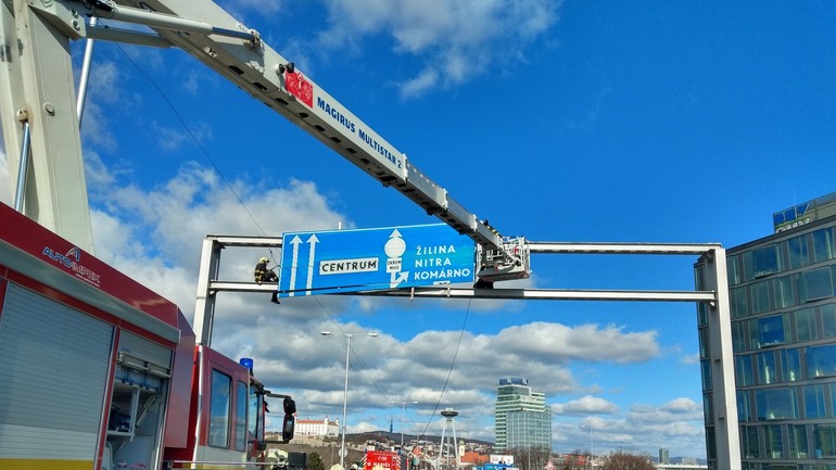 "Dnes, 24.02.2020, bola krátko po jedenástej hodine nahlásené uvoľnené dopravné značenie na moste SNP v Bratislave. Po príjazde hasičov bolo prieskumom zistené, že ide o uvoľnené dopravné značenie. Hasiči asistujú správcovi dopravného značenia Bratislava pri odstraňovaní uvoľneného dopravného značenia," uviedli dispečeri Hasičského a záchranného útvaru hlavného mesta Slovenskej republiky.