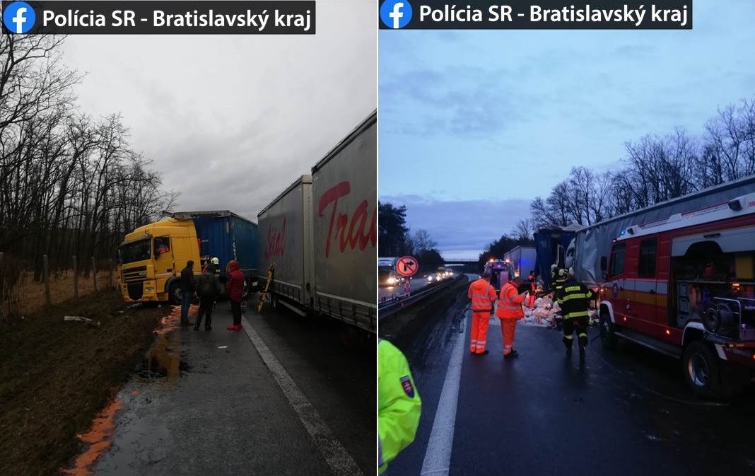 Vodiči hlásia viacero problémov na cestách - polícia zverejnila fotky aj z vážnej nehody na diaľnici D2