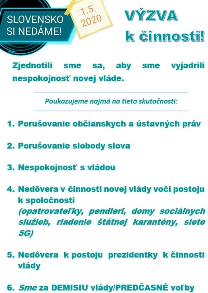 Na sociálnej sieti sa objavil aj takýto plagát, v ktorom boli vymenované dôvody na protest: