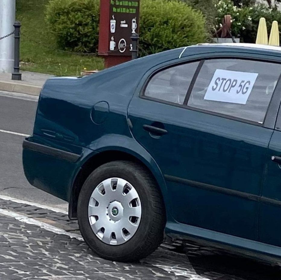 Na niektorých autách boli vylepené aj letáky proti zavádzaniu údajne zdraviu škodlivej 5G mobilnej siete na Slovensku...