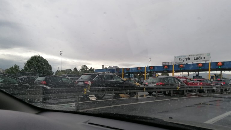 Ak ste boli na mýtnych bránach pred Záhrebom naučení na kolóny, čakajte ich opäť. My sme boli našťastie vybavení "krabičkou" na platbu elektronického mýta a naozaj sme to ocenili. Ak musíte platiť mýto v hotovosti alebo platobnou kartou, počkáte si v oboch smeroch v tradične dlhých kolónach. Pruhom na elektronické mýto ich obídete a prejdete prakticky bez zastavenia, ak nerátame pár sekúnd pred rampou.