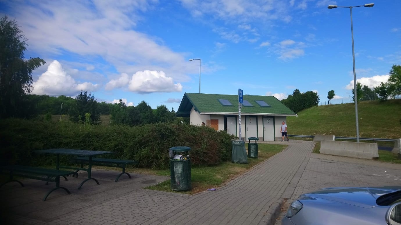 WC či umývadlo môžete v Maďarsku na odpočívadle využiť v tomto domčeku, ak nemáte so sebou dezinfekciu, radšej to nerobte. Voda tu tečie iba studená a kľučky po návštevníkoch nik nečistí.