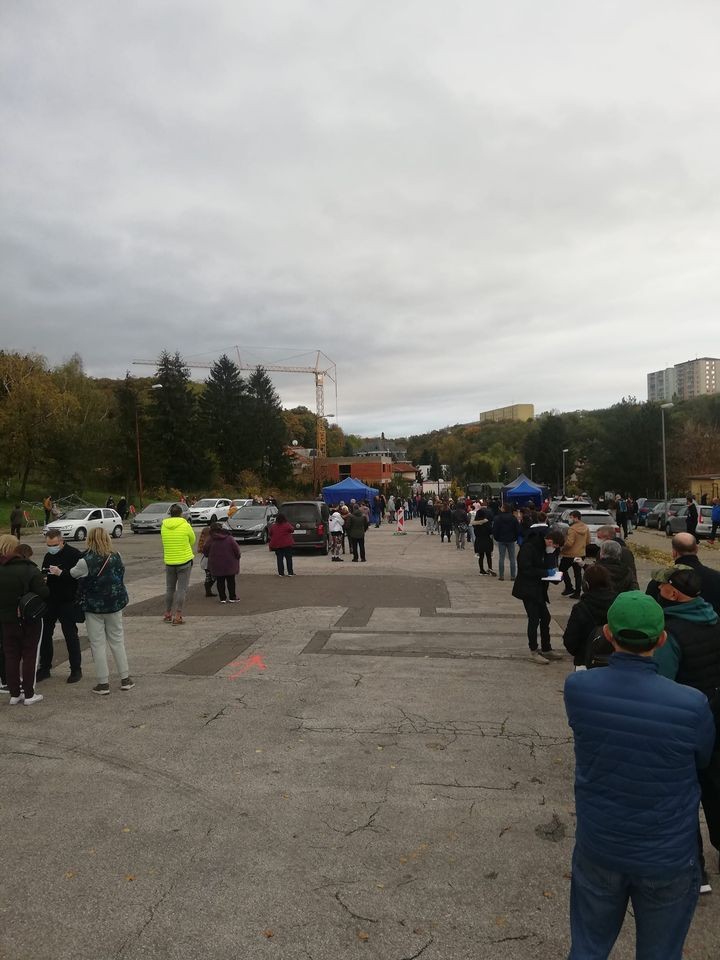 V popoludňajších hodinách sa napríklad v Líščom údolí dalo čakať na test už len mimo auta: