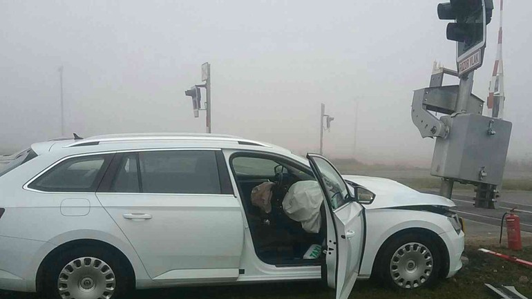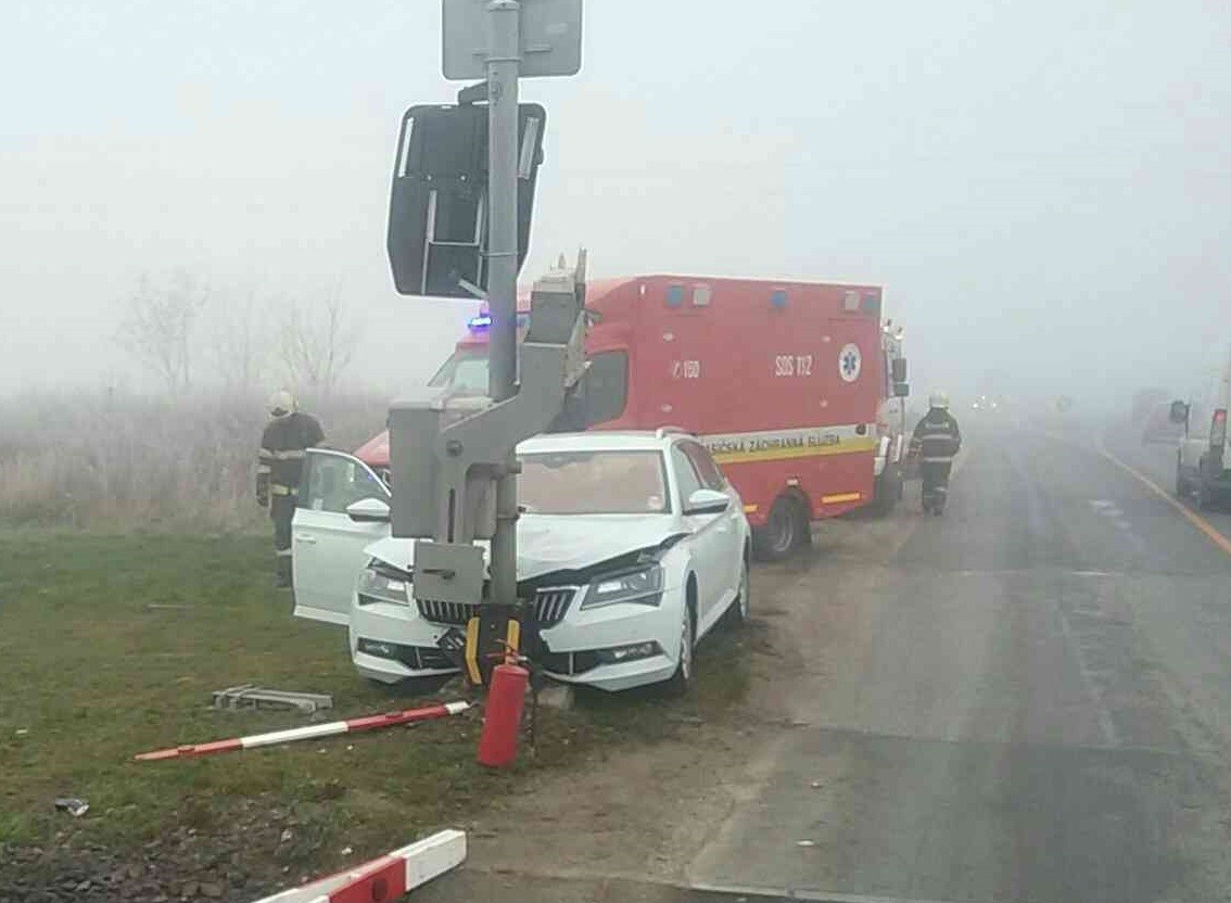FOTO: Na železničnom priecestí narazil vodič autom priamo do stĺpa tak silno až zlomil závory...
