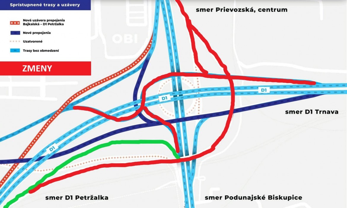 V noci na sobotu (27. 2.) dôjde k uzatvoreniu diaľničnej vetvy v smere od Trnavy na ulicu Prístavná a Slovnaftská. Táto vetva bude uzatvorená do 30. júna. Obchádzková trasa bude viesť po ulici Gagarinova.