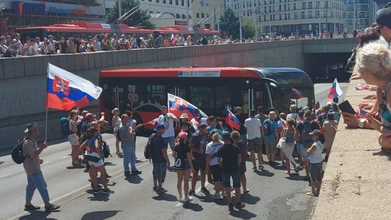 Celodenného štvrtkového protestu proti očkovaniu, pandemickým opatreniam i proti prezidentke SR Zuzane Čaputovej, členom vlády a parlamentu sa podľa pred Prezidentským palácom zúčastnilo tisíc až 1500 ľudí. Dav zablokoval komunikácie v okolí.