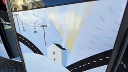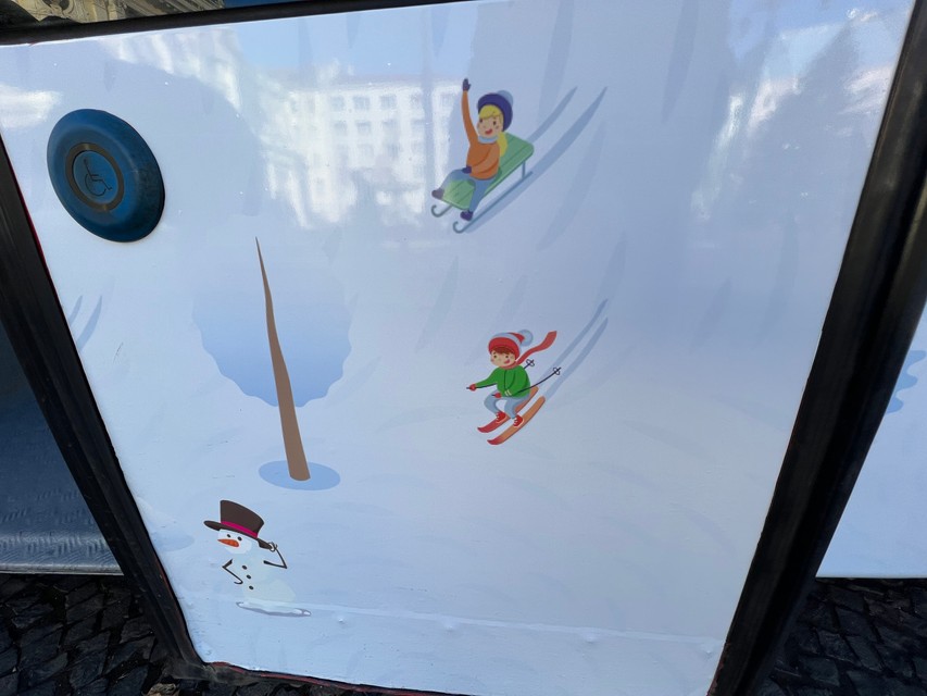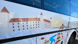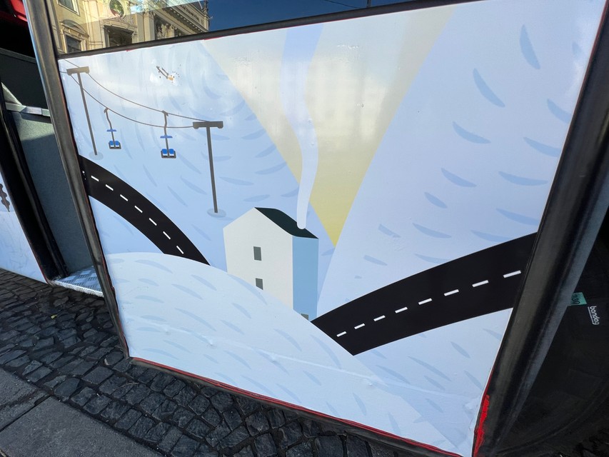Električka je z exteriéru dekorovaná aj ilustráciami detských ozdôb