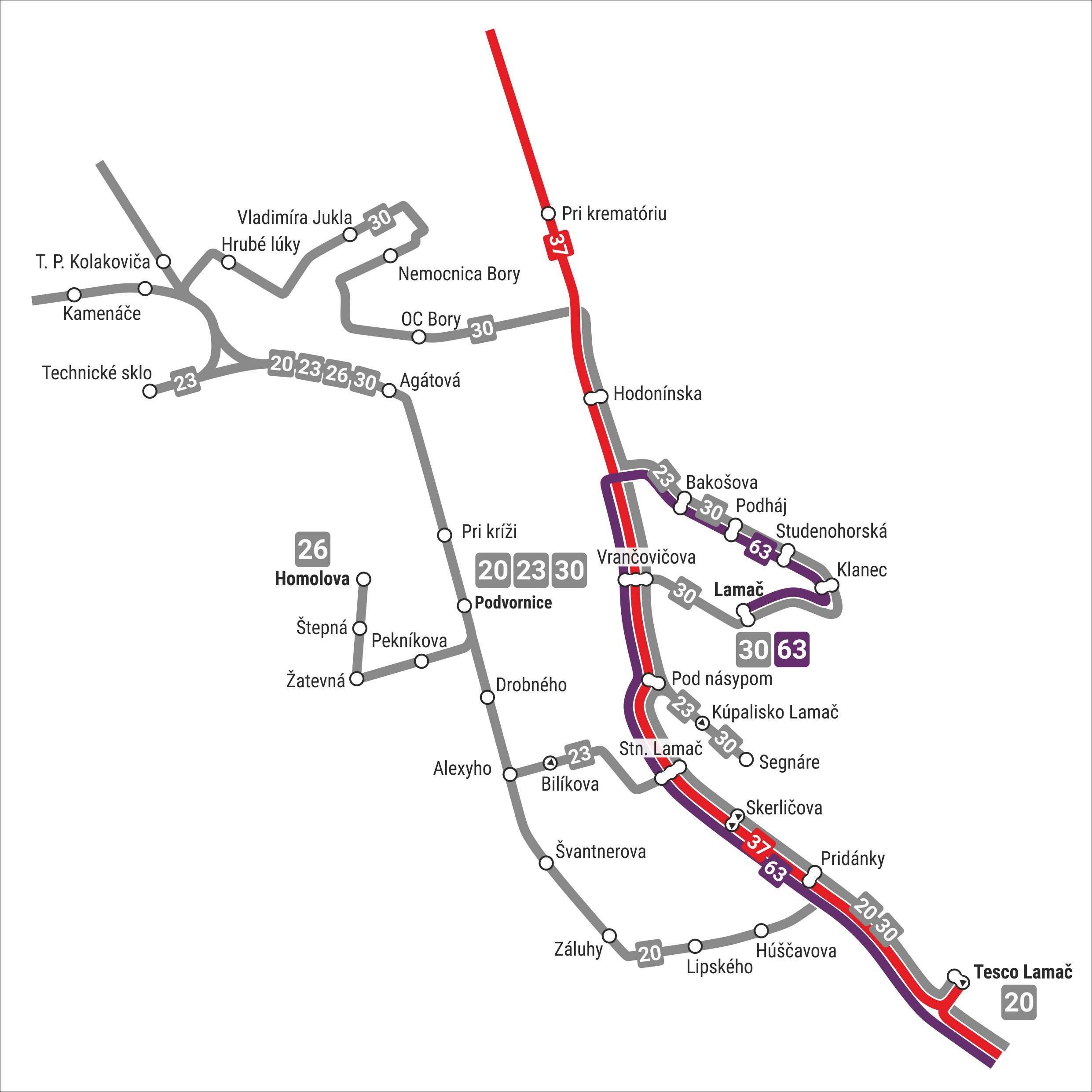 V Lamači sa zmeny dotknú liniek 23, 30, 37, 63, 92, 123 a 130.