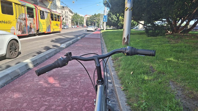 Opatrnosť sa určite vyplatí aj vtedy, keď budete prechádzať cez zúžený pruh oproti Slovenskej národnej galérii, ktorý pokračuje ďalej k múzeu, a rovnako cez spoločný cyklo-bus pruh v priestore zastávky MHD. Na zúženom pruhu bez ochranných obrubníkov sme sa necítili úplne komfortne, keďže autá išli tesne vedľa nás - a to doprava nebola taká zahustená, ako sme sa obávali. Iná situácia bola zrejme o hodinu neskôr, keď sa na Prístavnom moste smerom do Bratislavy tvorili kolóny pre nehodu kamióna s motocyklom, takže mnohí vodiči prechádzali centrom.