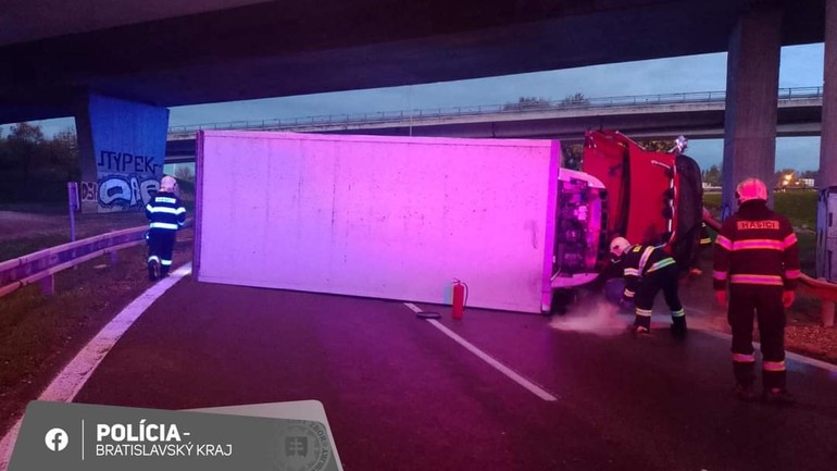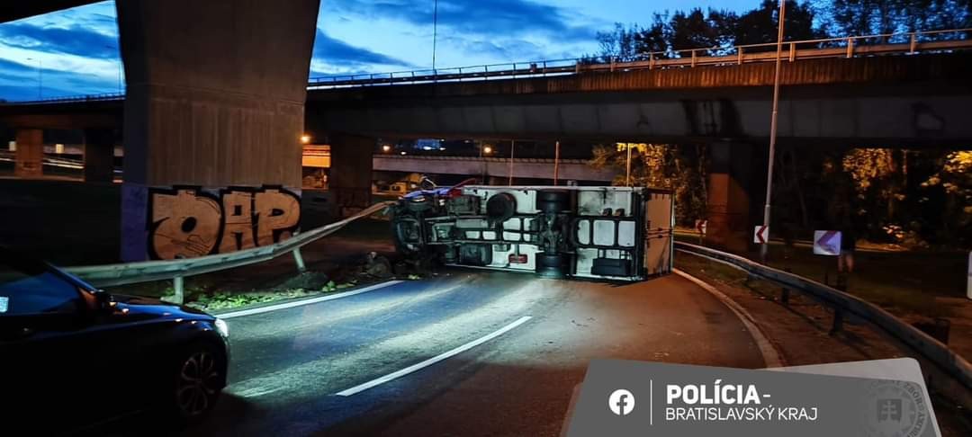 "Podľa doposiaľ nezistených príčin došlo k prevráteniu nákladného vozidla. Z tohto dôvodu je uzatvorený zjazd na Dolnozemskú cestu (smer Petržalka), premávka je dopravnými policajtmi odkláňaná na Einsteinovu ulicu," uviedli policajti.