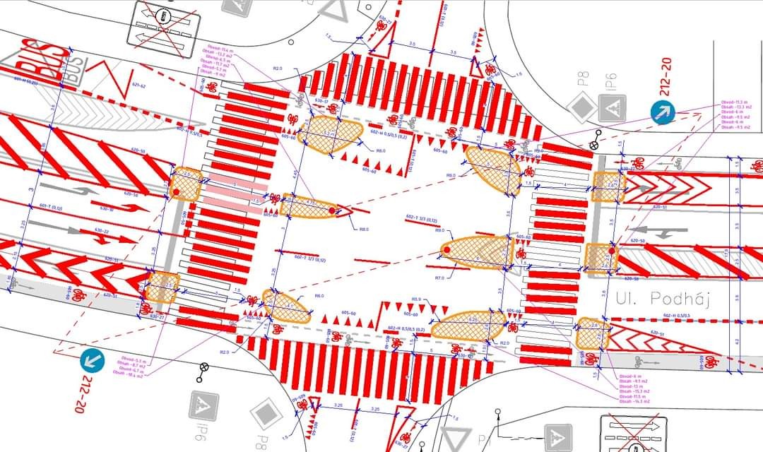 S chráneným vedením cyklistov vo všetkých vetvách bude križovatka zrejme prvou na Slovensku, ktorá do značnej miery spĺňa parametre tzv. holandskej križovatky.⁹