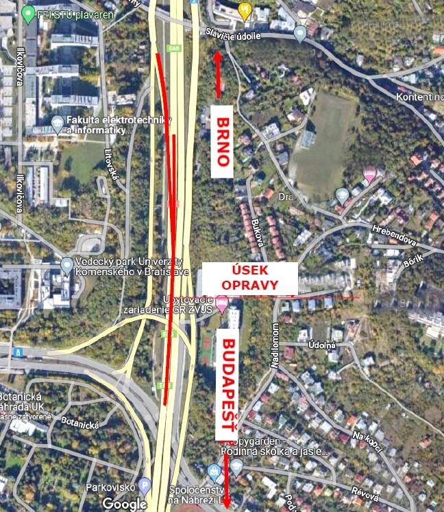 "Počas uzatvorenia uvedenej vetvy križovatky bude doprava presmerovaná na Botanickú ulicu, kde pri Botanickej záhrade je možnosť otáčania, respektíve obchádzka cez Nábrežie arm. gen. L. Svobodu, Most SNP, Einsteinovu ulicu a následne na diaľnicu D2," priblížila polícia.