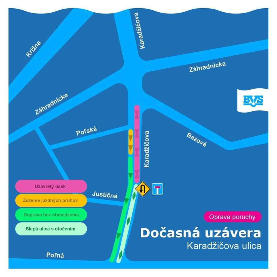 Náročnejšia je podľa vodárenskej spoločnosti oprava v smere von z centra mesta, kde budú opravovať oba jazdné pruhy. Doprava je v tomto smere cez Karadžičovu ulicu preto uzavretá. V smere do centra sa obmedzenia týkajú jedného jazdného pruhu v krátkom úseku.