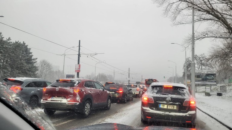 V Bratislave a okolí v stredu ráno nasnežilo, tvoria sa kolóny, vodiči si v nich postoja aj hodinu. Informuje o tom Zelená vlna STVR.