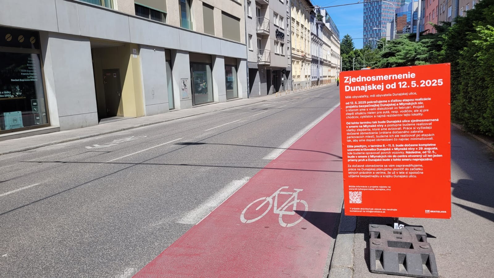 Dunajská ulica bude zjednosmernená od križovatky s Rajskou v smere na Mlynské nivy. Z Mlynských nív tak nebude možné pokračovať priamo na Dunajskú, pre vozidlá prichádzajúce z tohto smeru bude táto ulica prístupná obchádzkou cez Cintorínsku. Jazda po Dunajskej ulici bude možná po ľavej strane vozovky, vozovku na jej pravej strane čaká oprava.