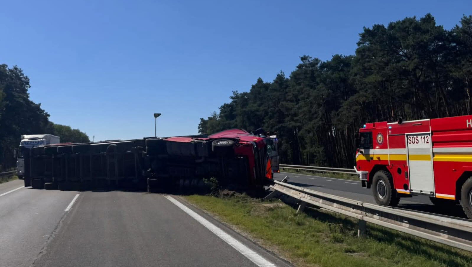 Na diaľnici D2 sa prevrátil kamión, zostala neprejazdná