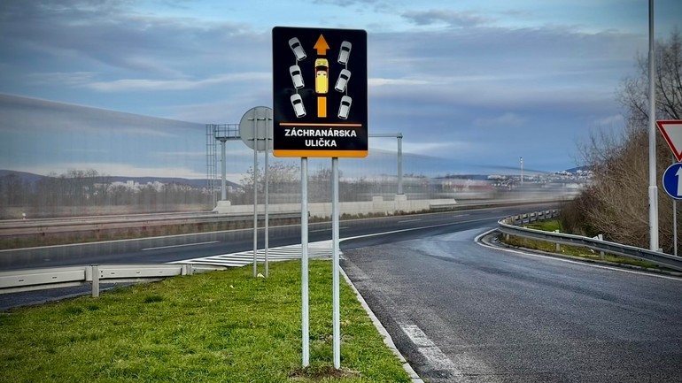 Tabuľa s vyobrazením uličky záchranyNárodná diaľničná spoločnosť (NDS) v rámci opatrení na zvýšenie bezpečnosti a osvety vodičov inštalovala desiatky informačných tabúľ s vyobrazením uličky záchrany.
