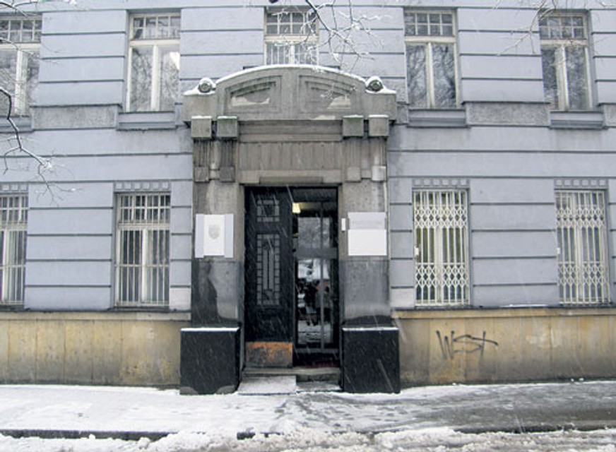 Do kancelárskej časti budovy sa vchádza nie veľmi nápadným vchodom v strede východného priečelia (Gondova 2). Po stranách pomerne skromného portálu sa nachádzajú kamenné bloky, výstupky, na ktorých by mohli stáť nádrže s kvetmi alebo stromami. V skutočnosti sú to podstavce, na ktorých stáli sochy vojakov uhorskej armády - honvédov - v nadživotnej veľkosti. Z pieskovca ich vytesal tunajší sochár Alojz Rigele, ktorého jeho umenie zachránilo od aktívnej vojenskej služby. Za vojaka ho síce napriek zlému zraku odviedli, ale zaradili ho do „umeleckého oddielu" (píše Zsolt Lehel v knihe Alojz Rigele).