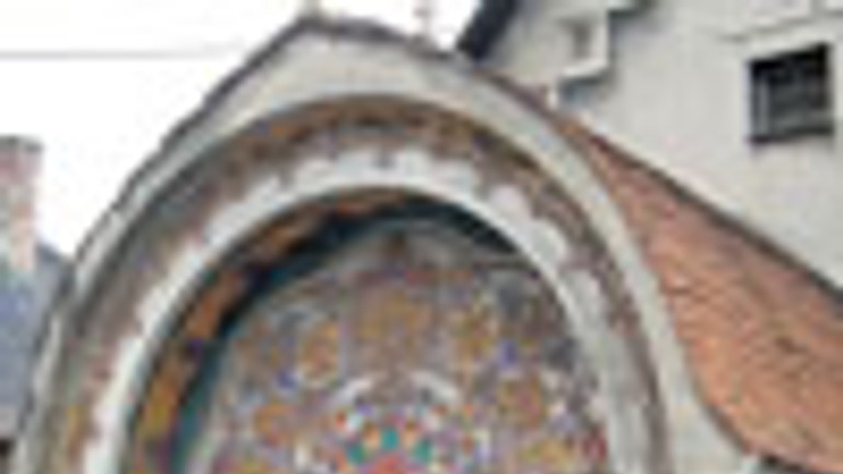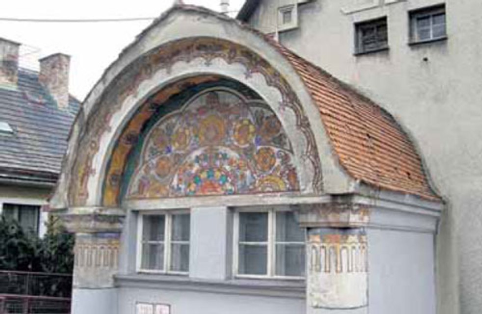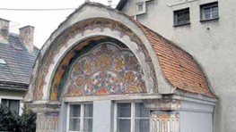 Polkruhová plocha v štíte „žudra” nad vstupnými dverami je vyplnená maľbou od Jaroslava Votrubu (1889 - 1971). Bol to maliar českého pôvodu, ktorý sa sem prisťahoval v roku