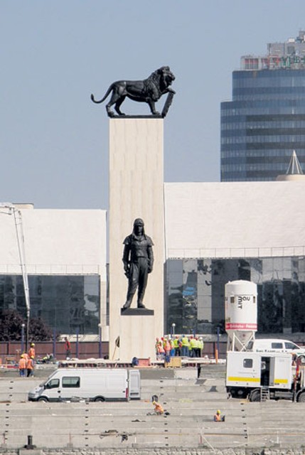 Prvý stupeň rehabilitácie kolosálneho pomníka sa realizoval v roku 1988, keď sa oslavovalo 70. výročie vzniku Československej republiky. Sochu leva znova odliali z pôvodného materiálu a umiestnili na nižší pylon s kamenným obložením podľa projektu architekta Ivana Salaya. Na absolútne nevhodnom stiesnenom priestranstve (ani nie námestí) pred Harmincovou budovou Slovenského národného múzea (pôvodne Zemedělského múzea). Pracovný názov „pomník československej štátnosti“ prerástol do oficiálneho pomenovania pomníka, hoci „štátnosti“ sa pomníky nikde nestavali a nestavajú. Malo ísť o pomník republiky ako v Paríži. No brať si vzor z kapitalistického Francúzska? To sa nesmelo.