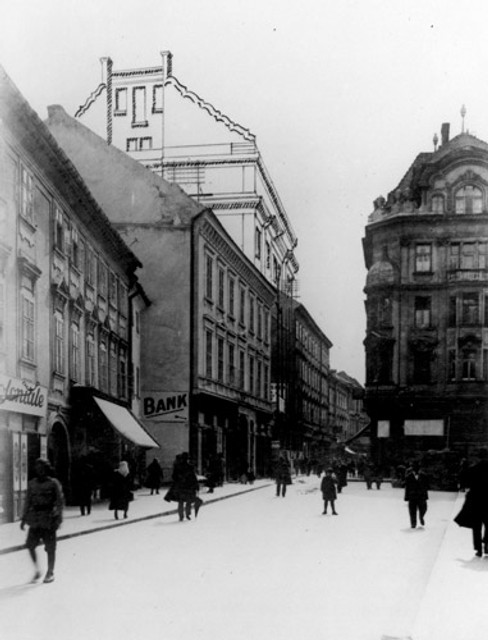 Oveľa drastickejším zásahom do ulice bolo postavenie susedného objektu Zemskej banky v roku 1924. Na mieste niekdajšieho zbúraného administratívneho paláca, v ktorom do začiatku devätnásteho storočia zasadal uhorský snem, postavili podľa návrhu pražského architekta Osvalda Polívku bankový obytný dom, ktorý nikdy dobre nezapadol svojou architektúrou medzi okolité stavby. Pritom architekt musel pred realizáciou svoj pôvodný návrh upraviť, najmä prepracovať návrhy fasád (aj do Komenského námestia), ktoré až príliš opakovali motívy z jeho vtedy už realizovaných pražských stavieb.