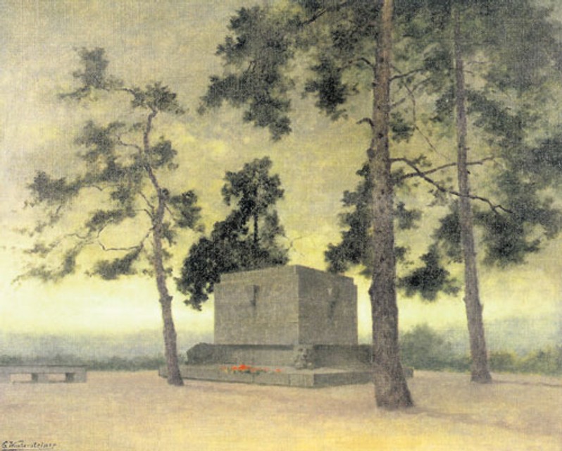 Časť obyvateľov mesto opustila a v nasledujúcich rokoch sa sem prisťahovalo nové obyvateľstvo, predovšetkým z českých krajín. Tí, čo tu ostali, sa snažili postaviť synom mesta, ktorí sa stali obeťami prvej svetovej vojny, dôstojný pomník. No práve preto, že sa postupne stávali vo svojom rodnom meste menšinou, trvalo dlho, než sa k stavbe pomníka pristúpilo. V roku 1925 vypracoval tunajší architekt Franz Wimmer (1885-1953) návrh na pomník, pre ktorý sa určilo miesto na vyvýšenine nad mestom, pri ceste do Horského parku. Už prv tam existoval rezervoár pitnej vody, ktorý patril mestskej vodárni. Na vrchole kopca nad plošinkou, kde mal stáť pamätník, bola vyhliadková veža s ozdobnou železnou konštrukciou.