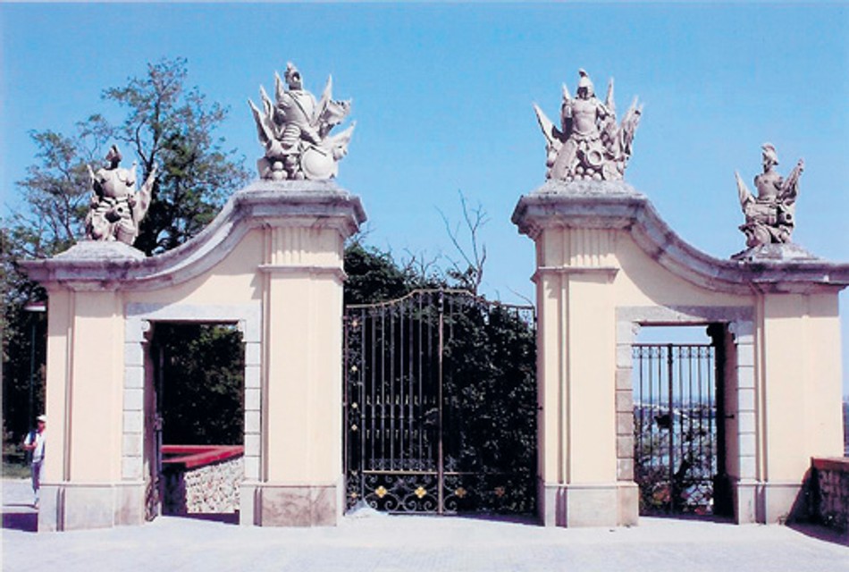 Južnú stranu ponechali otvorenú ako krásnu vyhliadku do krajiny. Skutočný “belveder”. Bočné budovy strážnic a dvojica brán tvoria jedinečný celok s prízemím hradného paláca, ktoré sa v strede pod balkónom otvára troma bránami do vnútorného nádvoria paláca.