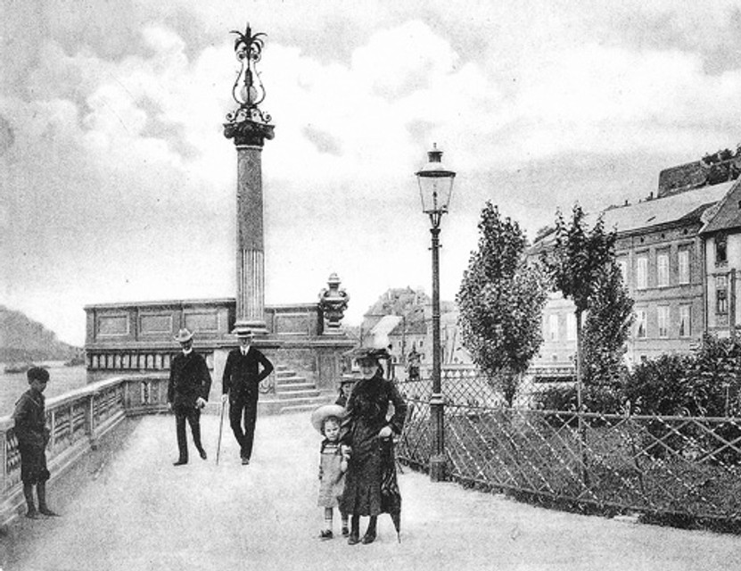 Na začiatku 20. storočia pripomínala Esterházyovcov ešte jedna stavba na dunajskom nábreží. Bola to vyhliadková terasa, približne na mieste, kde dnes Nový most prekrýva chodník nábrežia pozdĺž Dunaja. Na terasu viedlo široké kamenné schodište, vľavo od neho stál vysoký kamenný stĺp. Ten niesol lampu v kovovom ozdobnom koši, takže pripomínal maják na pevnom móle nad tokom veľrieky. Bola to prvá elektrická lampa na nábreží, všetky ostatné boli plynové ešte aj v 50. rokoch 20. storočia.