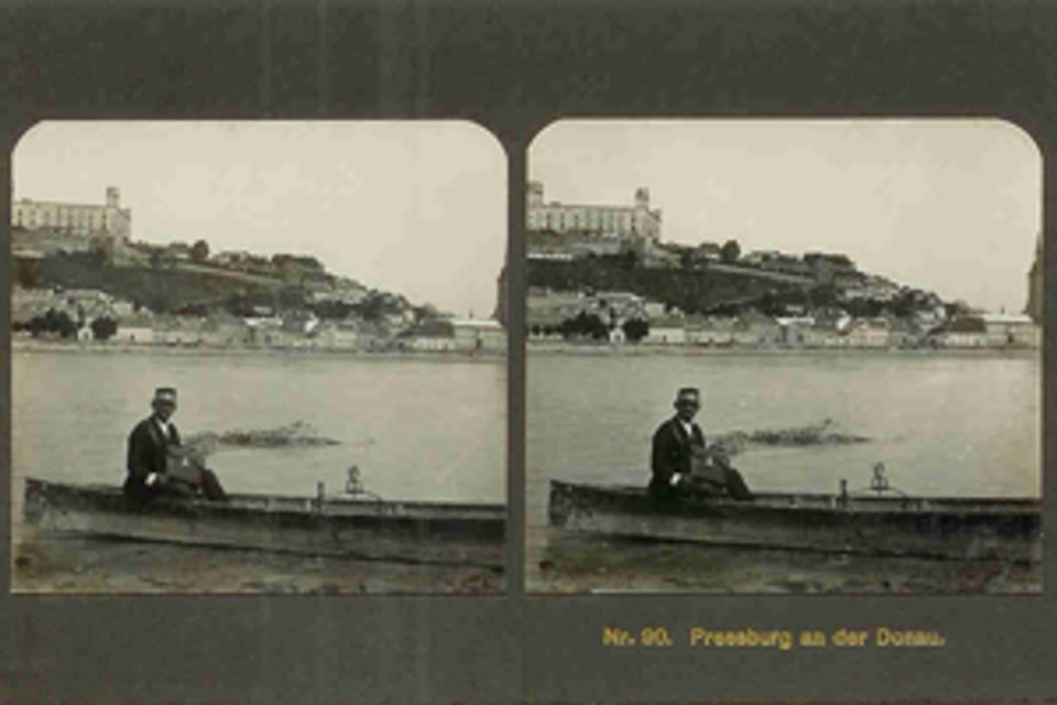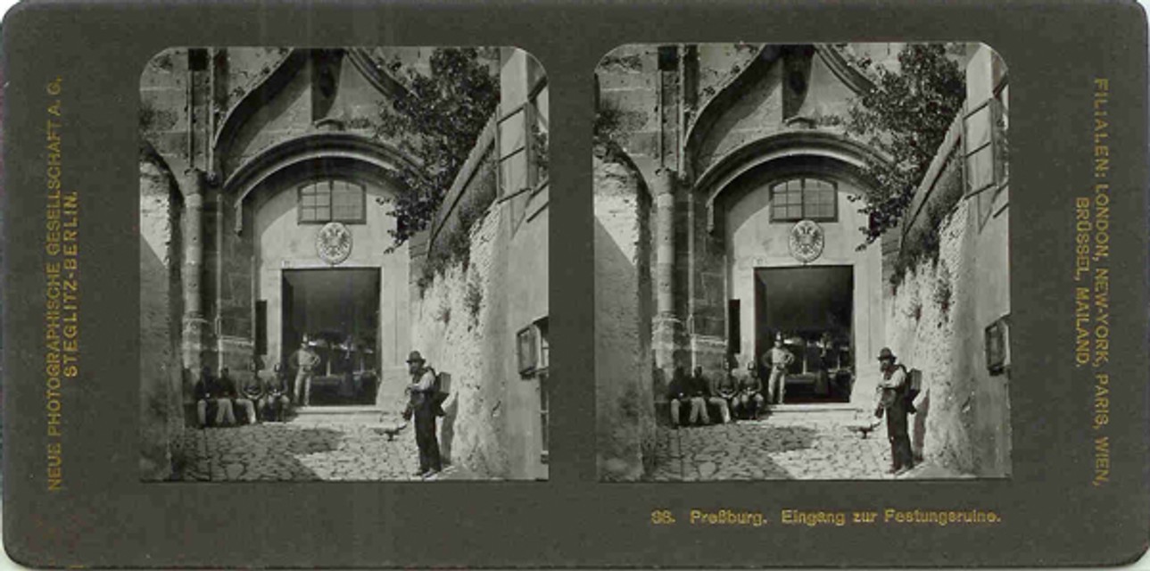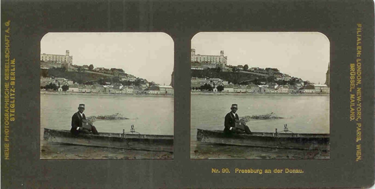 Niektorý z fotografov zablúdil okolo roku 1905 aj do Uhorského kráľovstva. Výsledkom jeho „služobnej cesty“ a usilovného výberu motívov boli aj zábery z Prešporku. Meno autora fotografických záberov na kartách uvedené nie je. Jednotlivé karty do stereoprehliadača sú číslované. Záber z Prešporku majú napríklad číslo 90 (Pressburg an der Donau: pohľad na ruinu kráľovského paláca na hrade a na podhradie z južného brehu Dunaja, pri ktorom na loďke sedí muž v uniforme pripomínajúcej poštára). Je isté, že aj pohľadov na prešporské objekty bolo viac. Prehliadačov a kariet do nich bolo vyrobených niekoľko tisíc kusov, ale dnes sú už len zberateľskou raritou.