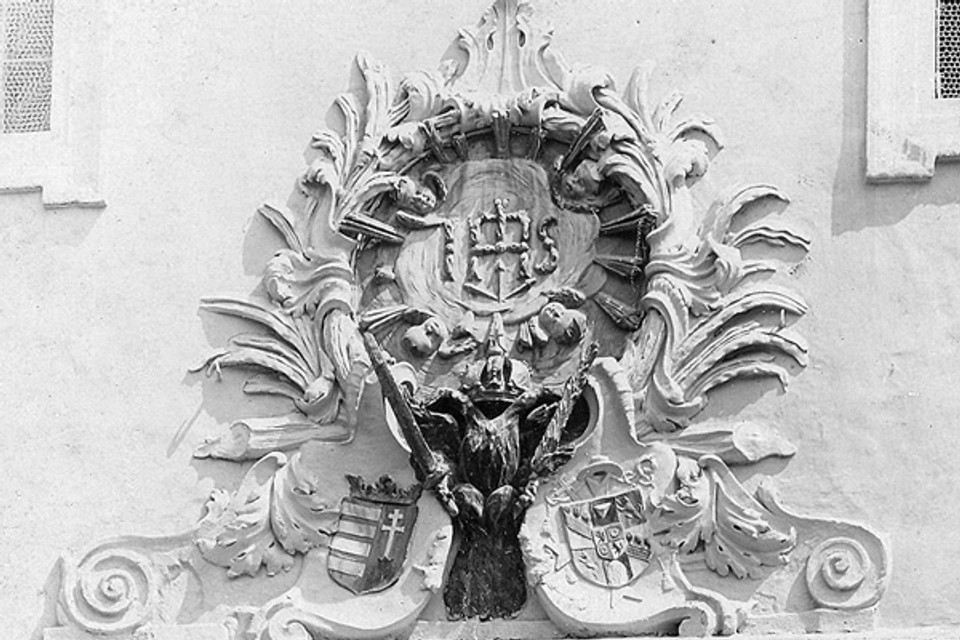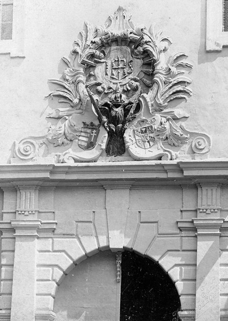 Jezuiti sa rozhodli symboly nad bránou kostola zničiť a nahradiť nápisom s náboženským obsahom. Namiesto orla a dvoch erbov, ktoré boli umeleckými dielami z druhej polovice 17. storočia, vítajú už deväťdesiat rokov návštevníkov kostola slová SIC DEUS DILEXIT MUNDUM, a medzi nimi symbol „Najsvätejšie srdce Ježišovo“, rozšírený od konca 19. storočia. Štít upravoval s veľkou pravdepodobnosťou niekto z okolia sochára Alojza Rigeleho.