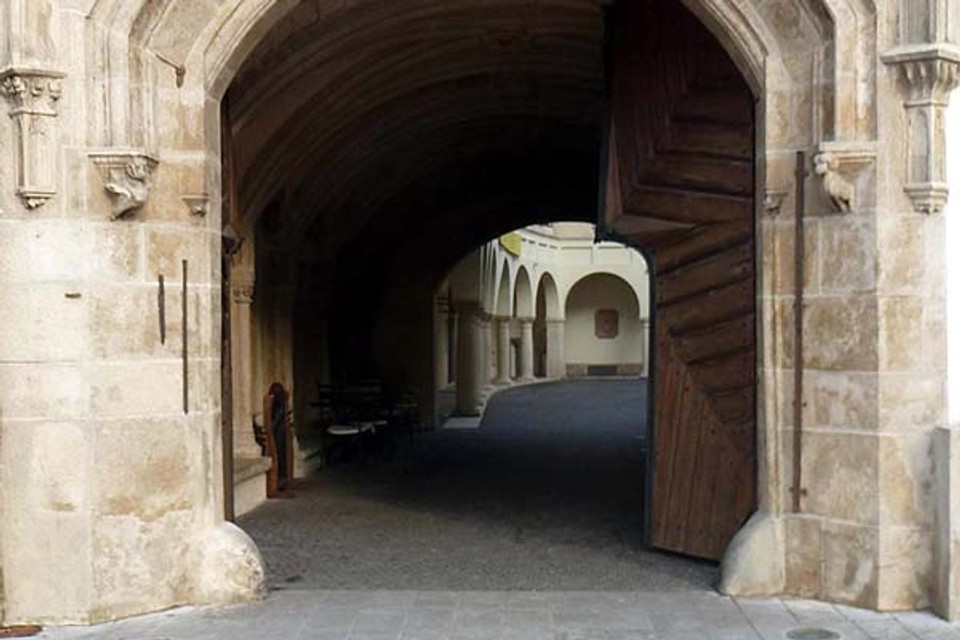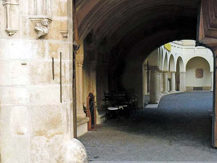 Dvorec s domom s vežou stál akoby na ostrovčeku uprostred verejného priestranstva – ako radnice v Levoči, v Bardejove či v Kežmarku. Nad južnou uličkou postavili už v roku 1422 priestrannú zhromažďovaciu sieň radnice. Ulička sa ako priechod na prízemí zachovala ešte dlho.