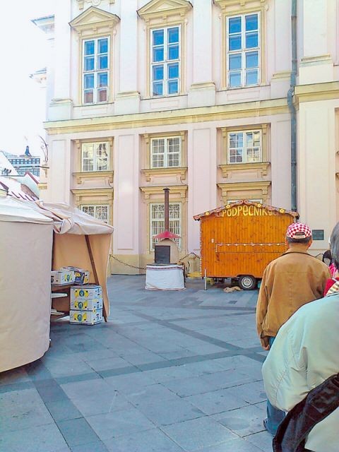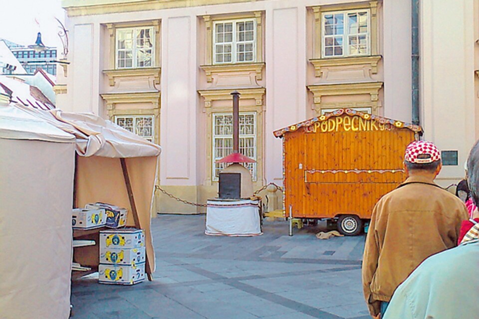 Organizátori sa postarali aj o občerstvenie. Ak mal niekto hlad, mohol si kúpiť podpecník. Tento druh tradičného „jedla chudobných“ síce do oblasti ÚĽUV-u vlastne nepatrí, ale zjesť sa (občas) dá. Horšie je, že z hliny sformovanú pec s plechovým komínom niekto povolil umiestniť tesne k fasáde národnej kultúrnej pamiatky - Primaciálneho paláca. Na labilný podstavec „vkusne“ zakrytý špinavou handrou (pardon, obrusom). Presne pod okná pracovne primátora (na druhom poschodí) a pod okná reprezentačných siení (na prvom poschodí). Zodpovednému pracovníkovi magistrátu (zabratie verejného priestranstva, Primaciálne námestie je v kompetencii magistrátu) a vedeniu mesta je asi jedno, ak dym a smrad z pece stúpa k fasáde historického objektu, preniká oknami do historickým miestností. Pritom práve v sieňach paláca na reprezentačnom prvom poschodí („piano nobile“) sa nachádza najvzácnejší hnuteľný poklad mesta, séria šiestich kusov nástenných kobercov s námetom z antickej mytológie (Hero a Leandros) zo 17. storočia. Nie je síce jediná svojho druhu, v Mortlake v Anglii utkali v priebehu 17. storočia viac takých sérií. Jedna z nich bola majetkom anglického kráľa, po jeho smrti sa dostala do majetku švédskych kráľov. Teraz slúži ako dekorácia stien salónu v kráľovskom apartmáne v zámku v Drottningholme pri Štokholme. Nie je kompletná, lebo na začiatku 20. storočia pri požiari iného švédskeho kráľovského zámku jeden kus zhorel, a z iného sa podarilo zachrániť len polovicu. Zdá sa, že vedeniu mesta je jedno, či bratislavská séria tapisérií - najlepšie zachovaná zo všetkých známych – ostane zachovaná, alebo či ju poškodí požiar. V blízkosti pece nebolo celý deň vidno ani prípadných asistujúcich hasičov. Dym z komína fučal (aj) na fasádu.
