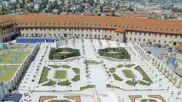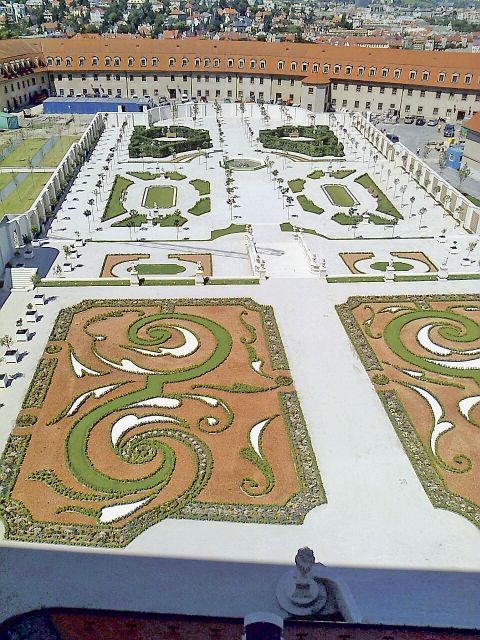 Po roku 1741 vznikli v areáli dve barokové záhrady podľa plánov cisárskeho záhradného architekta Franza Antona Zinnera. Väčšia a prepychovejšia z nich sa nachádzala na svahu pod severnou fasádou kráľovského paláca. Predtým tam bol kameňolom, ktorý dodával kameň na stavbu paláca v 15., 16., aj v 17. storočí.